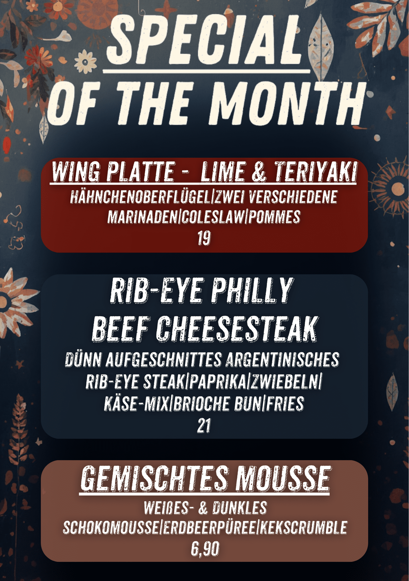 Speise- & getränkekarte